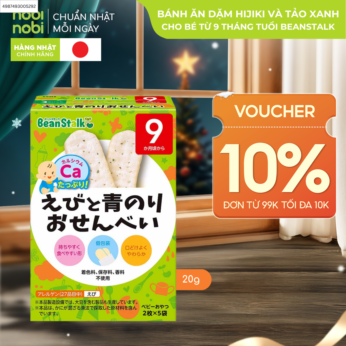 - Quy chuẩn Nhật Bản với kích thước và độ mềm phù hợp cho bé từ 6 tháng tuổi. Bánh ăn dặm BeanStalk được chế biến kỹ càng với kích thước, độ mềm phù hợp cho từng tháng tuổi để sản phẩm không chỉ cung cấp năng lượng, dinh dưỡng cho bé mà còn giúp bé hoàn thiện kỹ năng nhai, nuốt và ghi nhớ mùi vị trong giai đoạn bé phát triển phản xạ nhai, nuốt.