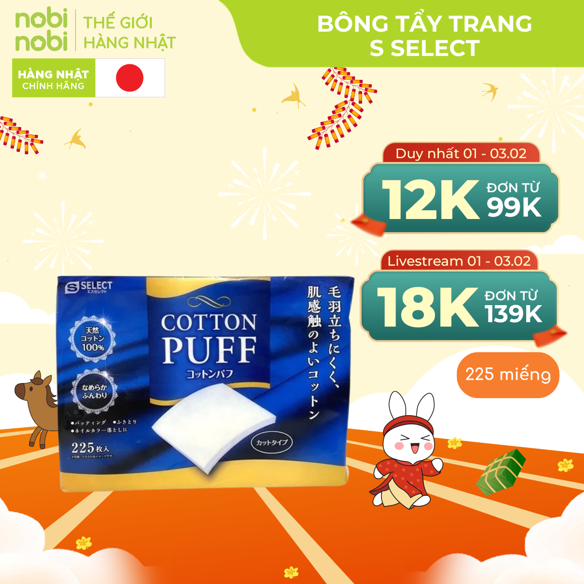 Bông Tẩy Trang S Select Cotton Mềm Mịn Giúp Làm Sạch Da Túi 225 miếng