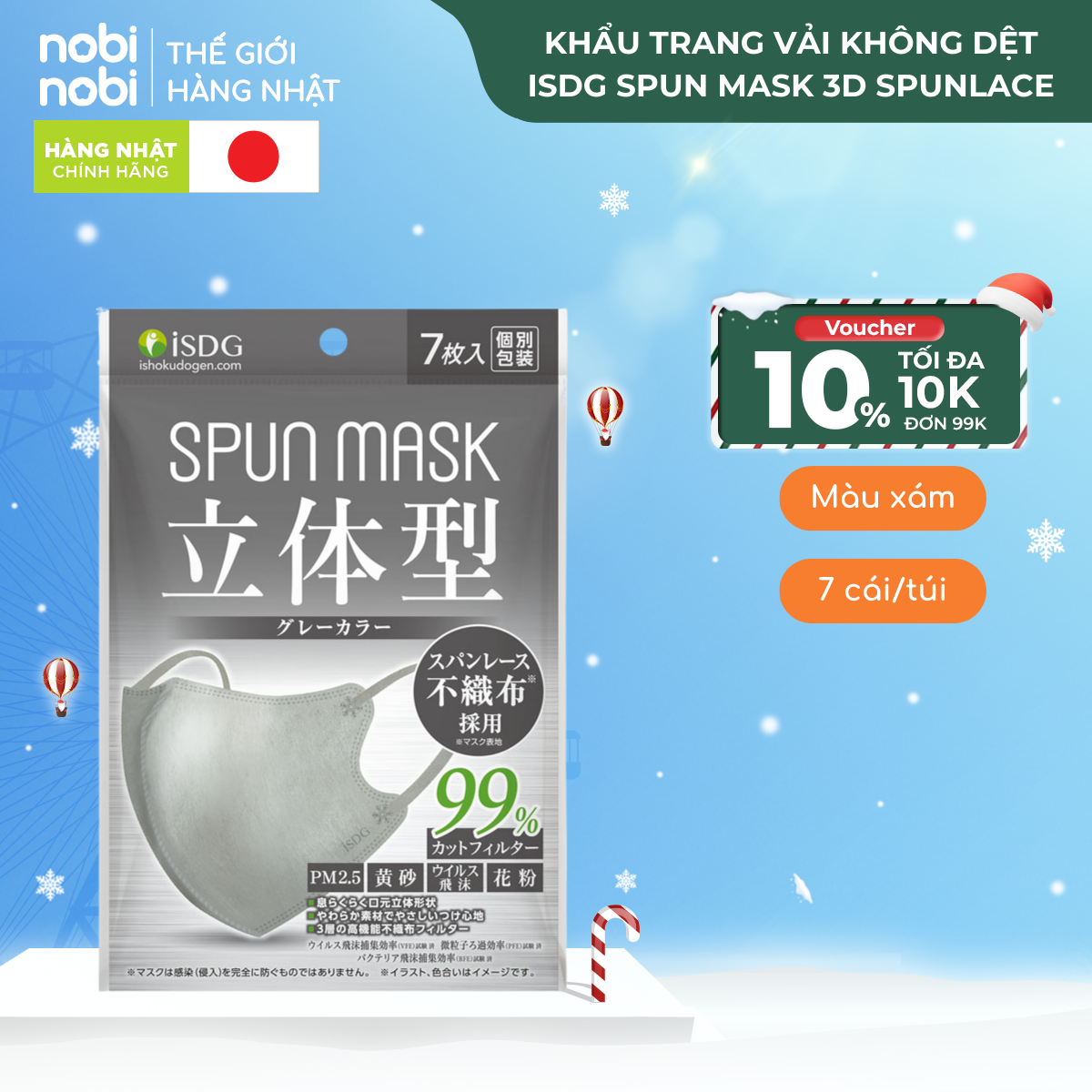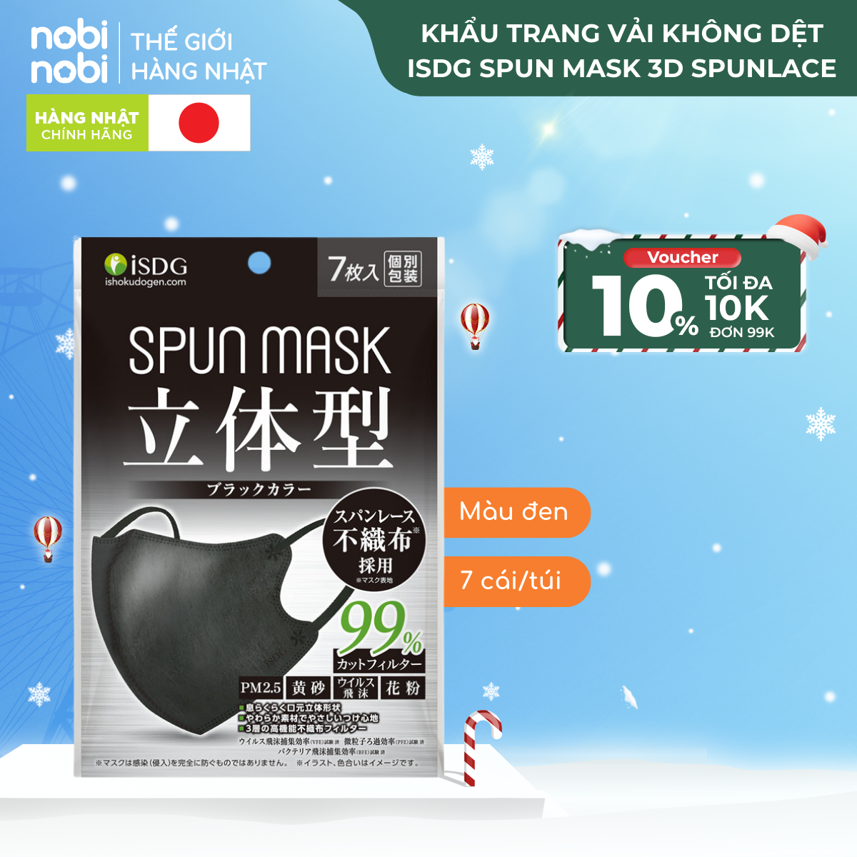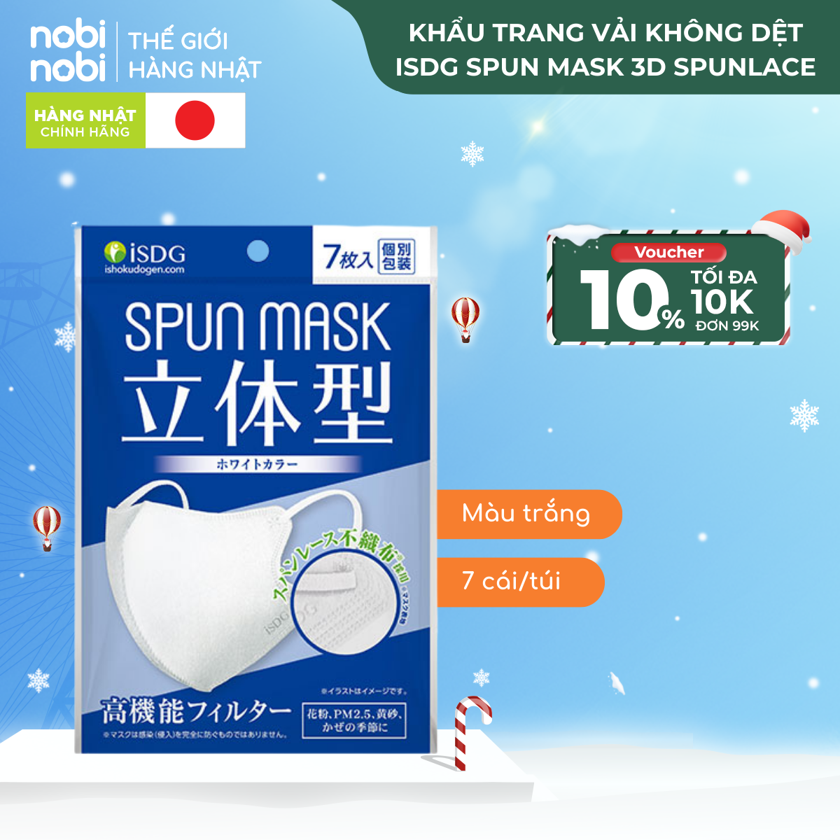 Khẩu trang SPUN MASK 3D với chất liệu Spunlace mềm mại, lọc 99.9% bụi mịn, chống tia UV, màu sắc đa dạng, thích hợp dùng hàng ngày.