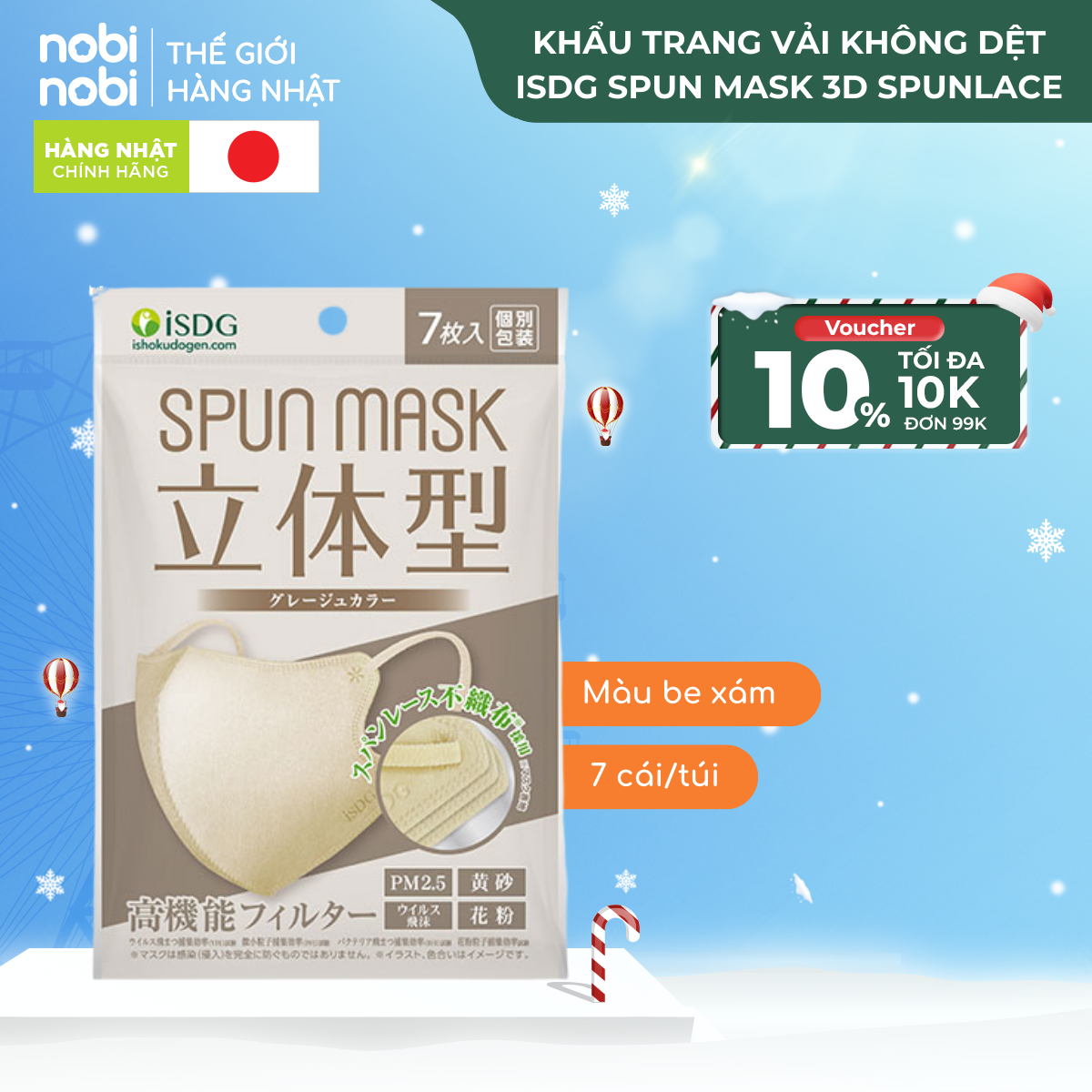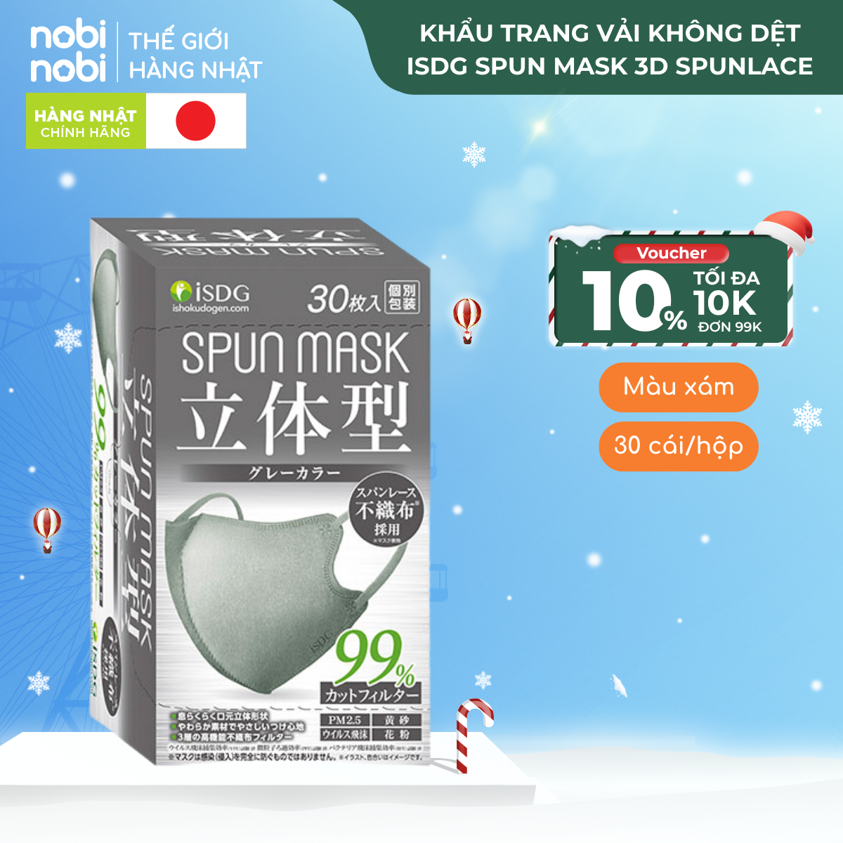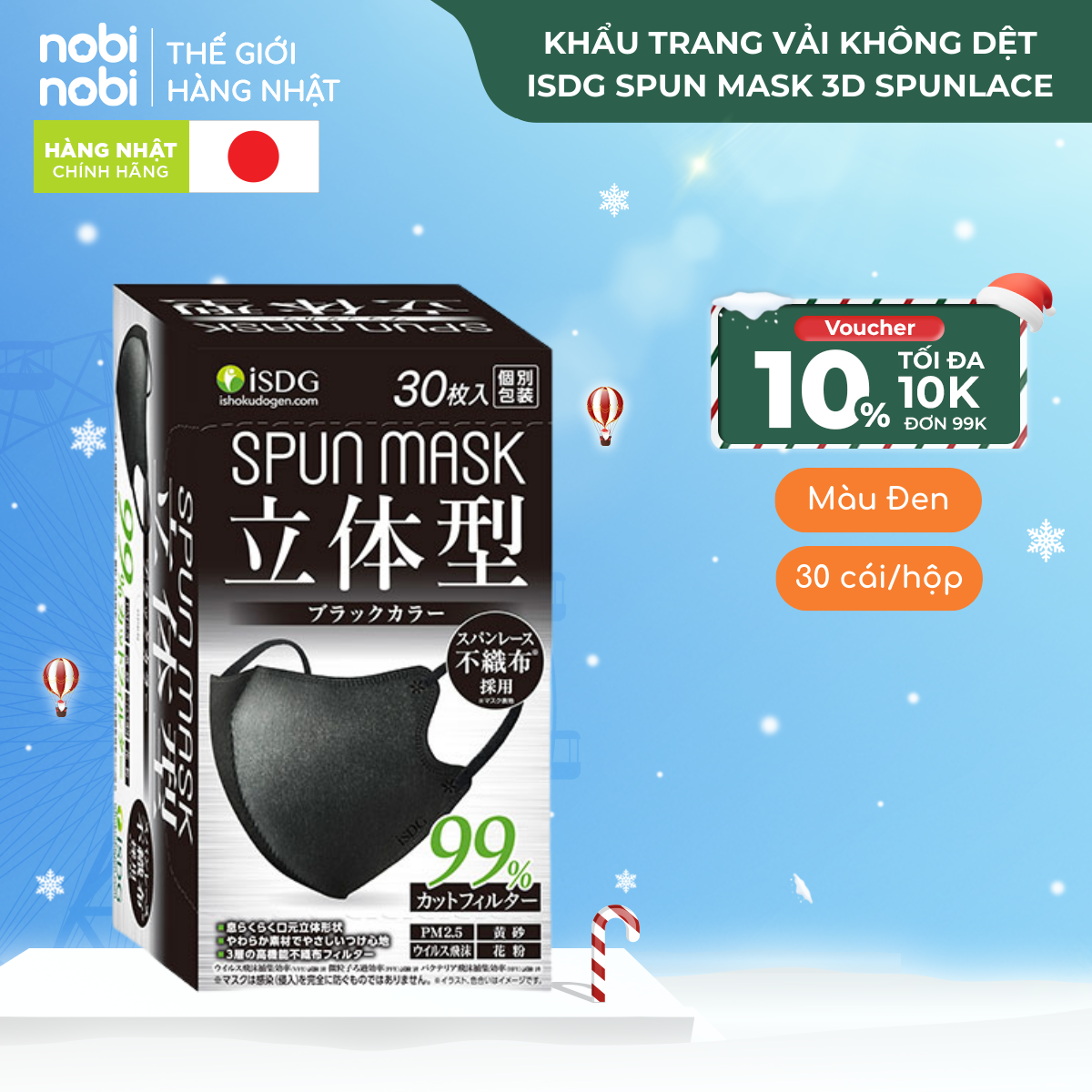 Khẩu trang SPUN MASK 3D với chất liệu Spunlace mềm mại, lọc 99.9% bụi mịn, chống tia UV, màu sắc đa dạng, thích hợp dùng hàng ngày.