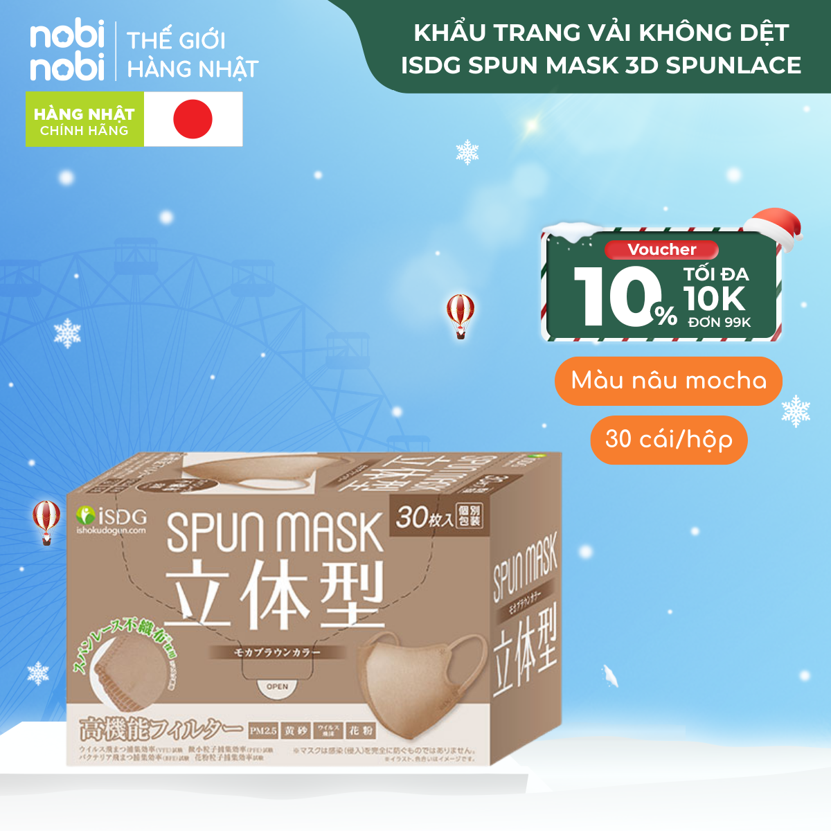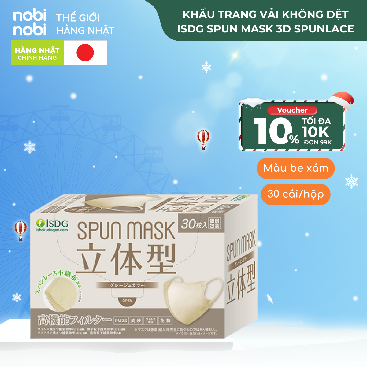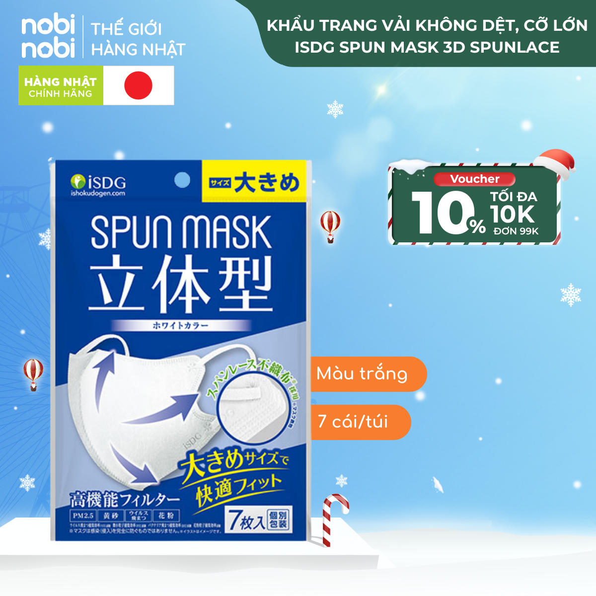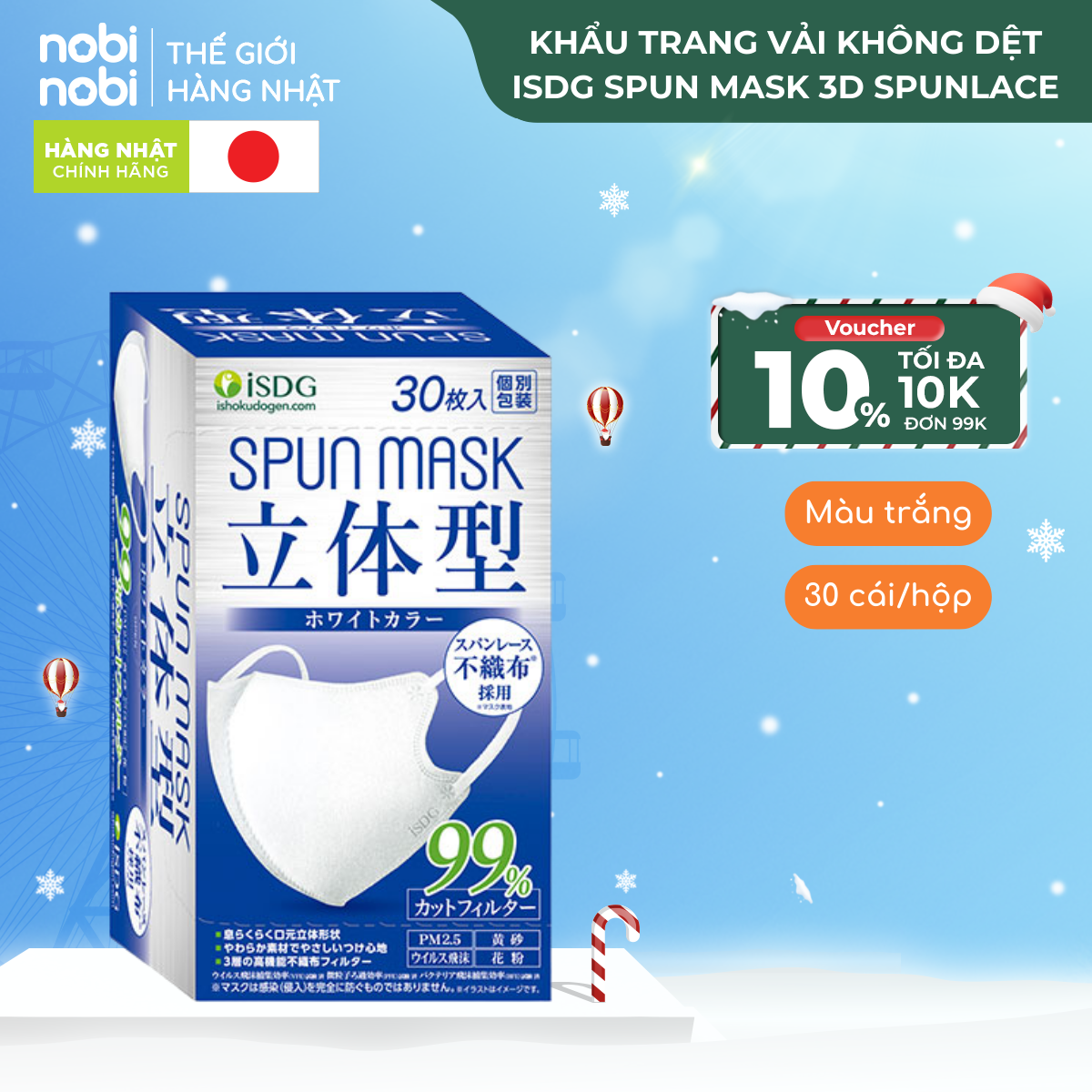 Khẩu trang iSDG SPUN MASK 3D Spunlace Chống bụi mịn PM 2.5, loại to, 30 cái/hộp (Màu trắng)