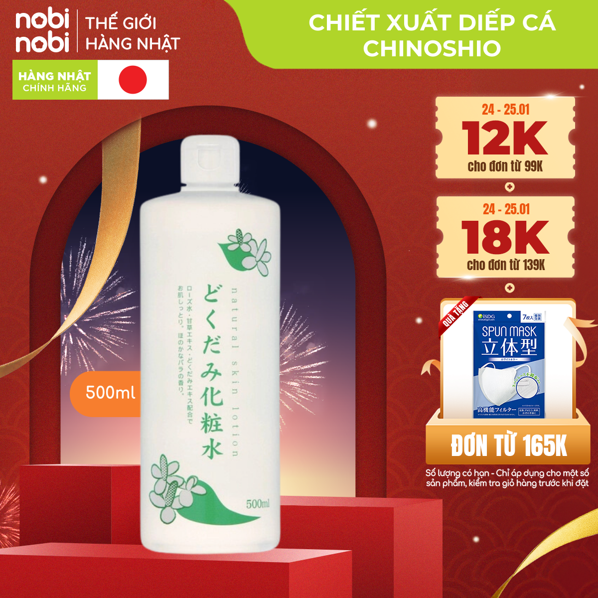 Nước Hoa Hồng Chinoshio Dokudami Dưỡng Ẩm Dành Cho Da Dầu Mụn Chiết Xuất Lá Tía Tô 500ml