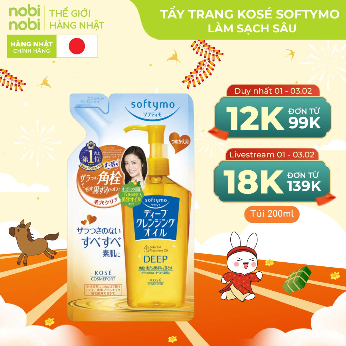 Dầu Tẩy Trang Kosé Softymo Deep Cleansing Oil 230ml (Màu vàng đậm): Da dầu, da dày sừng, nhiều dầu thừa và mụn đầu đen, lớp trang điểm đậm