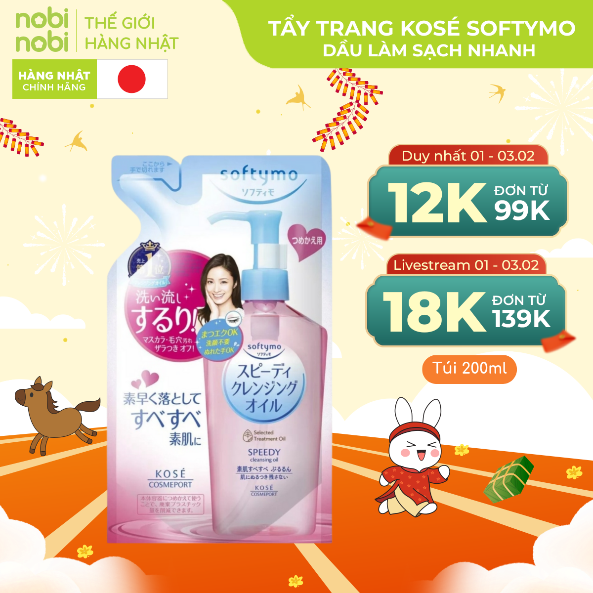 Kosé Softymo Cleansing Oil - dòng dầu tẩy trang đình đám từ Nhật Bản, mang đến giải pháp làm sạch da hiệu quả, an toàn và dịu nhẹ cho mọi loại da. Với công thức độc đáo từ 5 loại dầu thiên nhiên, Kosé Softymo nhẹ nhàng loại bỏ lớp trang điểm dày cộm, bụi bẩn và dầu thừa, đồng thời dưỡng ẩm sâu, giúp da mềm mại và mịn màng.