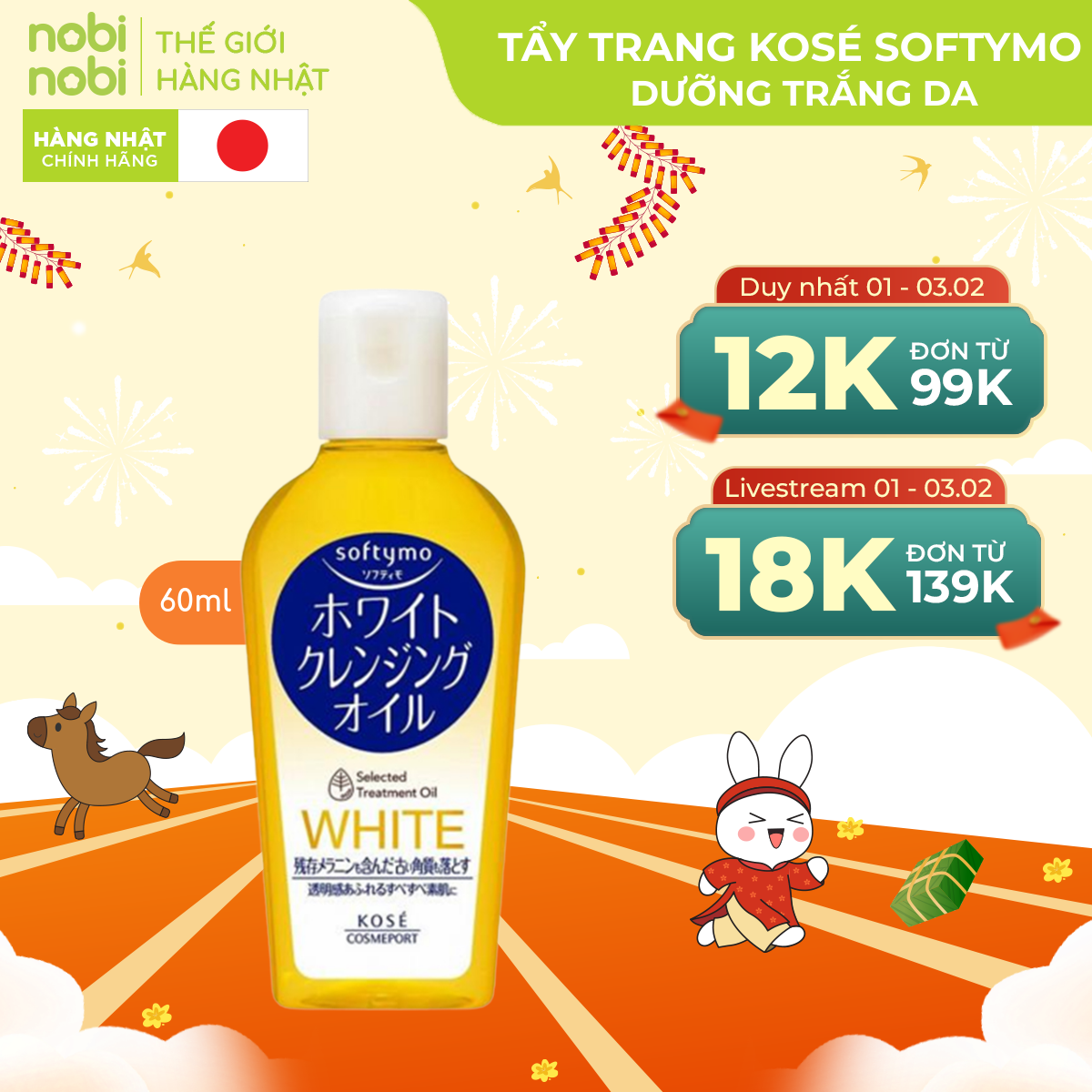 Dầu Tẩy Trang Kosé Softymo White Cleansing Oil 230ml (Màu vàng nhạt): Da khô