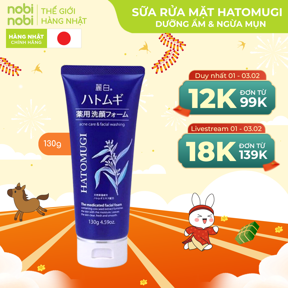 - Sữa Rửa Mặt Hatomugi Moisturizing & Facial Washing The Facial Foam 170g: phù hợp với mọi loại da, sản phẩm kết hợp với tẩy trang và sữa rửa mặt giúp làm sạch da nhanh chóng và tiện lợi