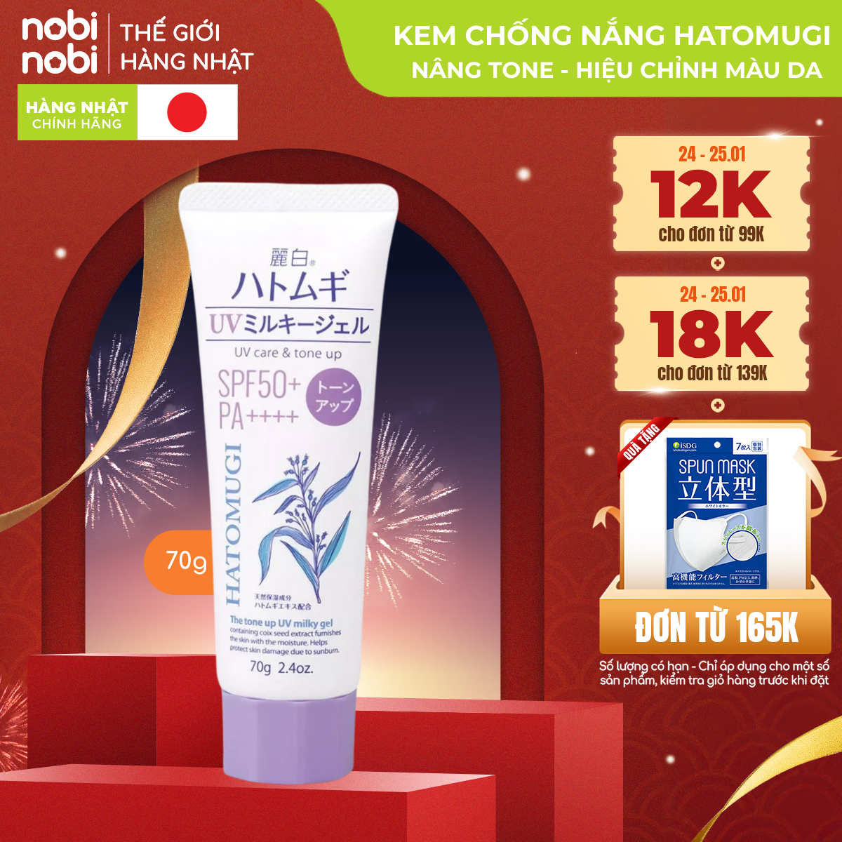 1. Công dụng sản phẩm Kem chống nắng nâng tone và dưỡng ẩm da nội địa Nhật Hatomugi: